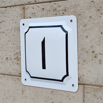 Выпуклая основа таблички изготавливается (выштамповывается) из оцинкованного металла (толщиной 0,7 мм) и окрашивается стойкой порошковой эмалью. Надписи наносятся по технологии аппликации, качественными пленками немецкого производства. Срок службы таблички – не менее 7 лет.
