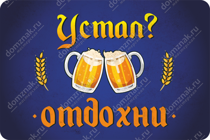Табличка «Устал? Отдохни.» изготовлена из пластика ПВХ, толщиной 4 мм. Изображение наносится по технологии УФ-печати. Табличка предназначена для использования как в помещении, так и на улице.