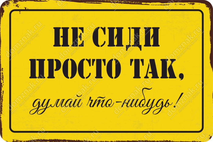 Табличка «Не сиди просто так, делай что-нибудь» изготовлена из пластика ПВХ, толщиной 4 мм. Изображение наносится по технологии УФ-печати. Табличка предназначена для использования как в помещении, так и на улице.