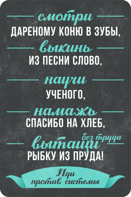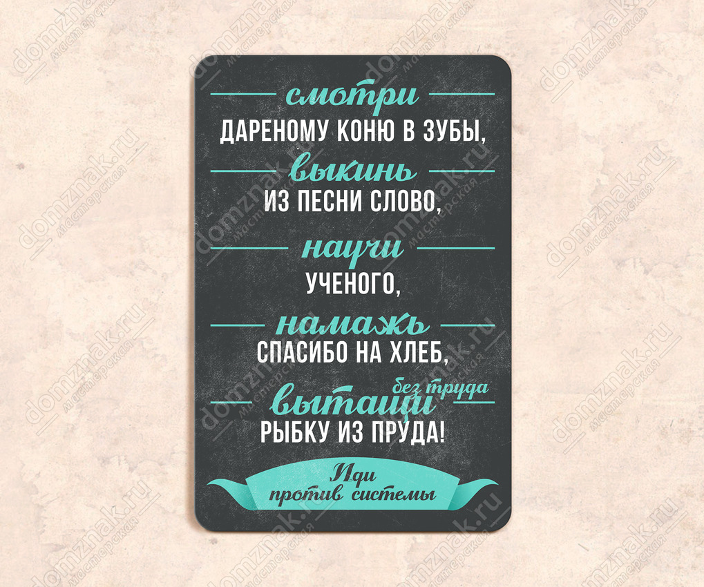 Табличка «Иди против системы» изготовлена из пластика ПВХ, толщиной 4 мм. Изображение наносится по технологии УФ-печати. Табличка предназначена для использования как в помещении, так и на улице.
