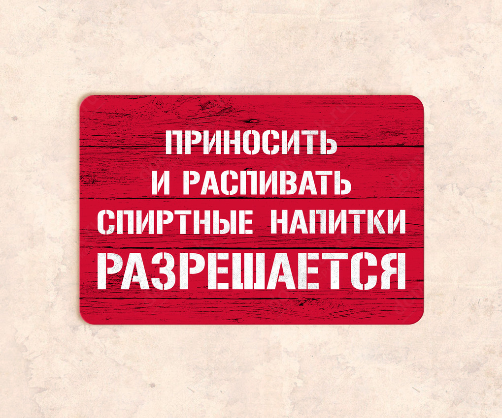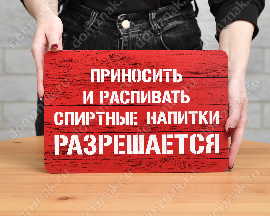 Табличка «Приносить и распивать спиртные напитки разрешается»