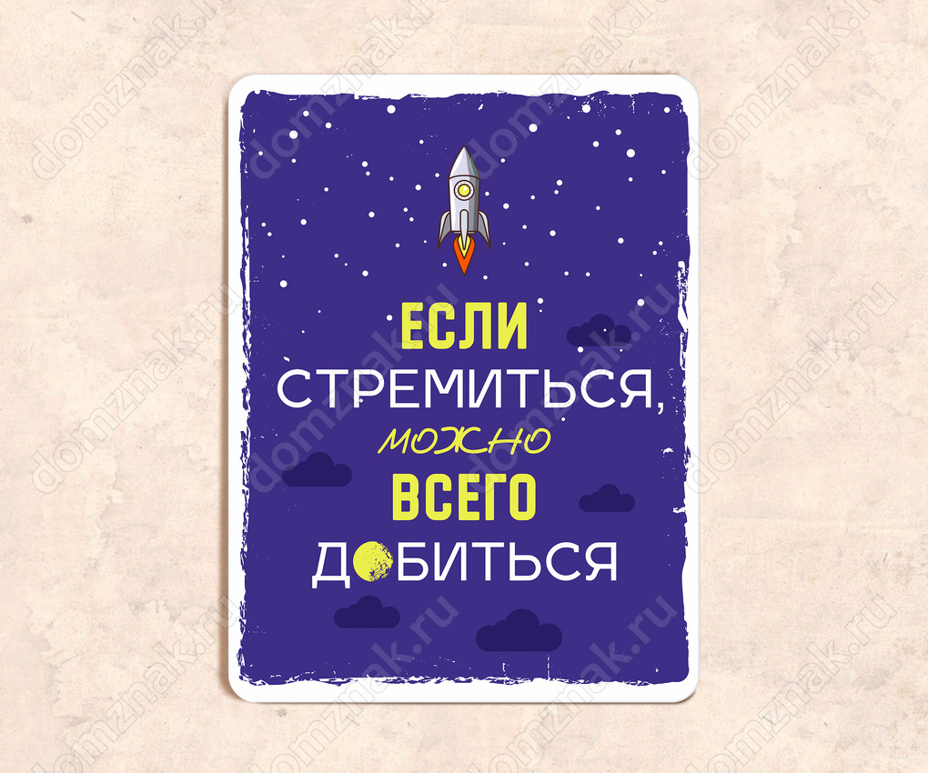 Табличка «Если стремиться, можно всего добиться» изготовлена из пластика ПВХ, толщиной 4 мм. Изображение наносится по технологии УФ-печати. Табличка предназначена для использования как в помещении, так и на улице.