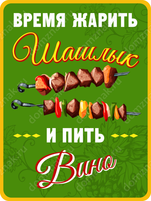 Табличка «Время жарить шашлык и пить вино» изготовлена из пластика ПВХ, толщиной 4 мм. Изображение наносится по технологии УФ-печати. Табличка предназначена для использования как в помещении, так и на улице.